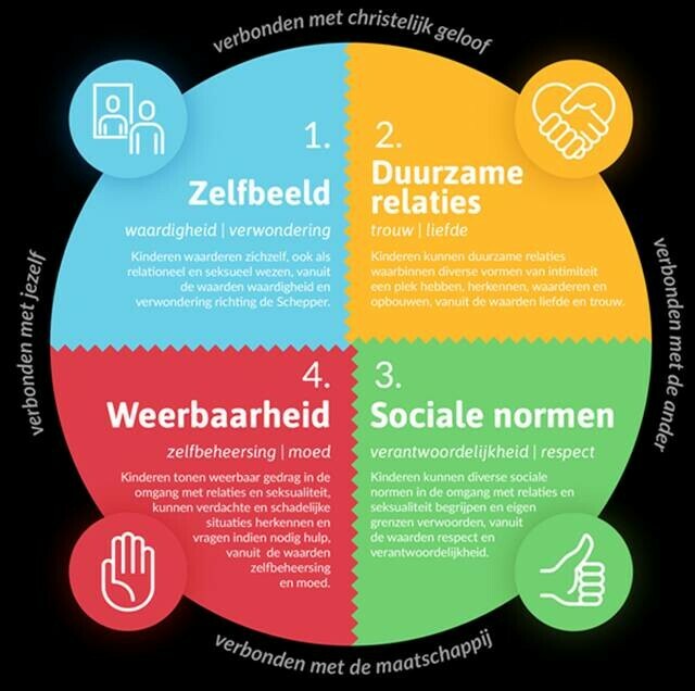 Om bij deze kriebels aan te sluiten starten wij in het kader van de Vreedzame school deze week voor het eerst met de lessen van Wonderlijk gemaakt. Dit is een christelijke methode! De methode is een lessenserie over relationele en seksuele vorming. In elke jaargroep worden er deze periode enkele lessen gegeven. Daarmee werken we aan doorgaande lijnen door de school. Als team maken we ook bewuste keuzes welke onderwerpen we aanbieden en welke niet. De lessen zijn gericht op de thema’s uit de figuur in de bijlage.
