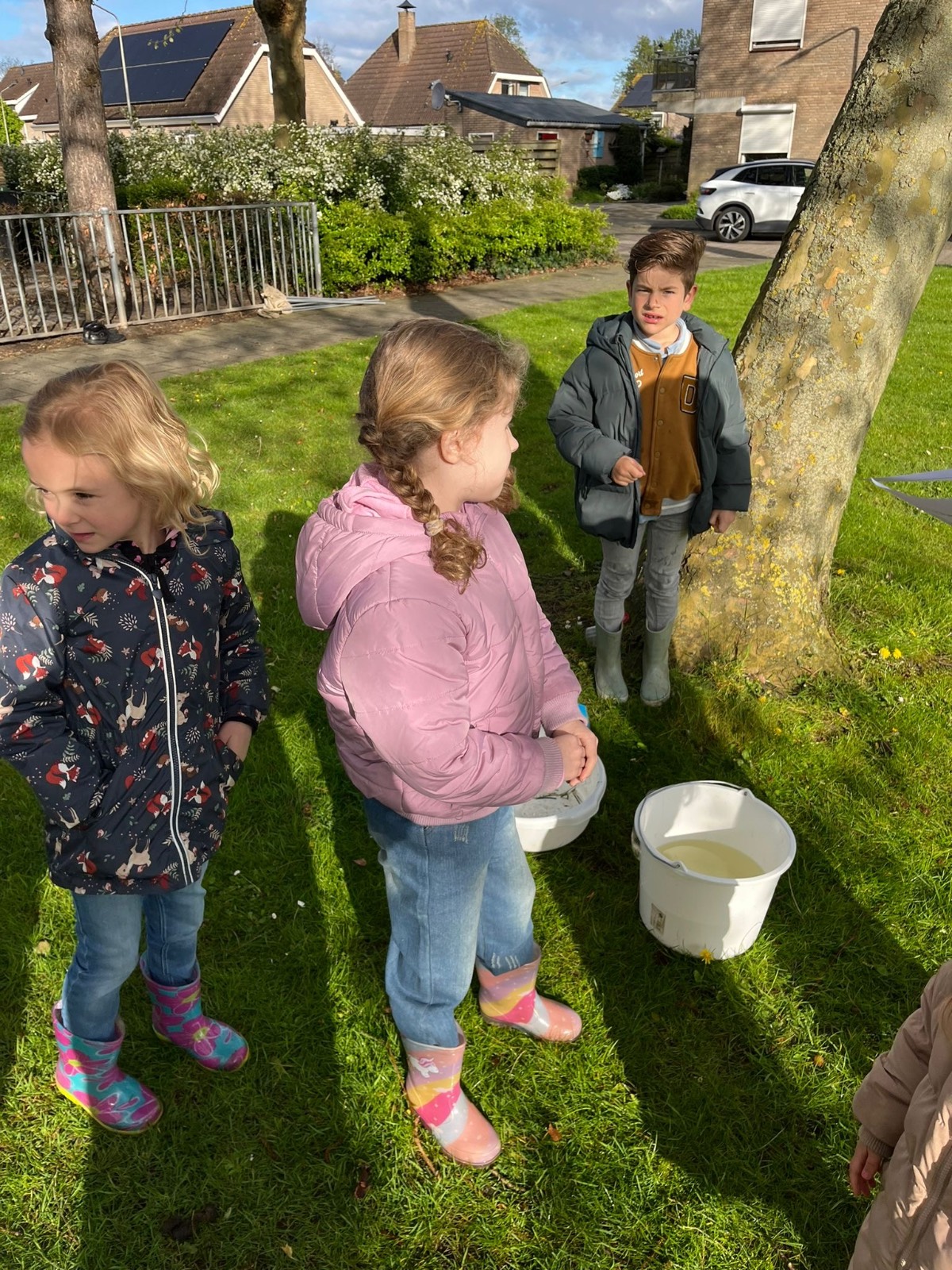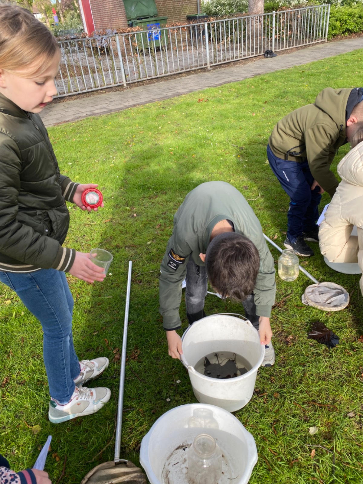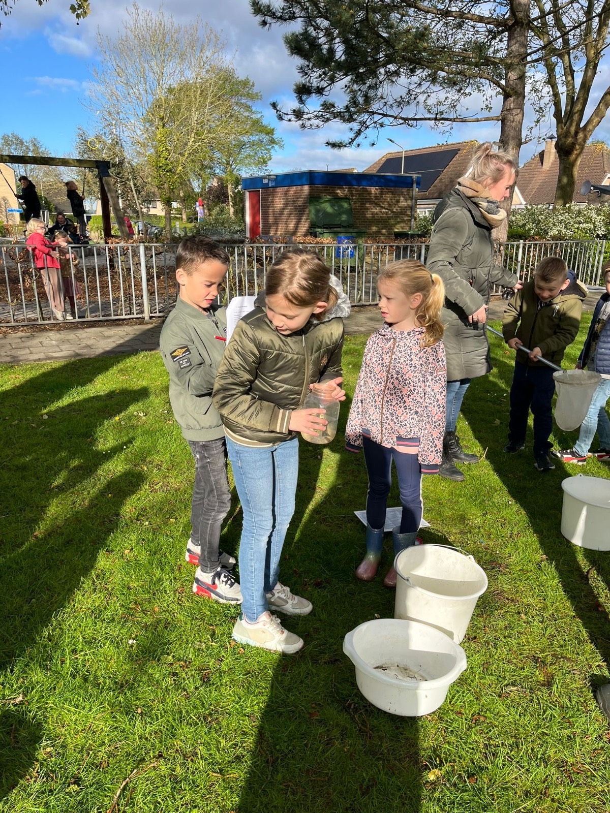 We kregen vandaag een gastles over water. We hebben het water achter de school onderzocht. De kinderen haalden er emmers water uit en we keken of er leven in zat. Met schepnetten visten we allerlei kleine diertjes uit de sloot waarvan de namen opgezocht konden worden op een opzoekkaart. Een leerzame en gezellige les waarbij we ook konden genieten van de frisse buitenlucht! 🌤️