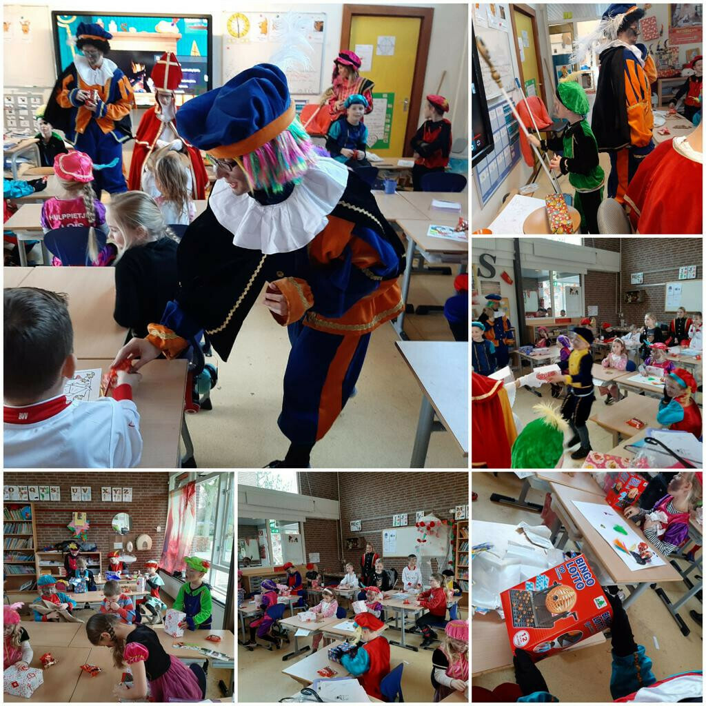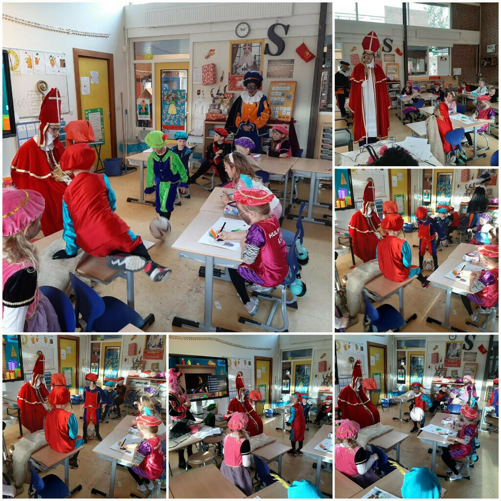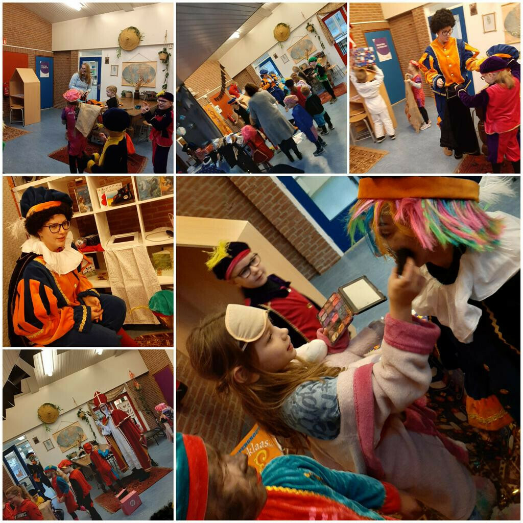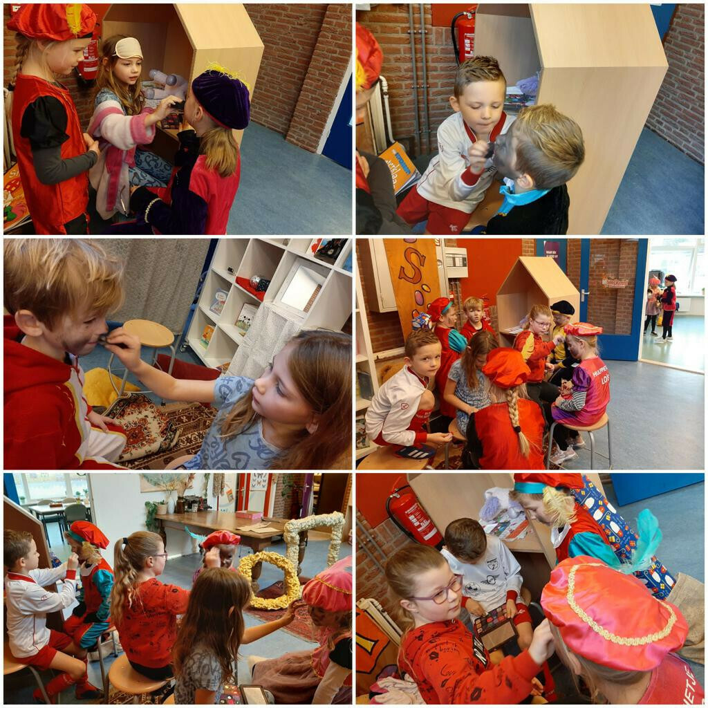 Eerst ging Sinterklaas Sjoerd met de juffen pieten naar groep 1/2 en konden groep 3/4 zich verder verkleden, schminken en nog even de kunsten oefenen voor de 'Sint'. Verder werd er nog wat moois gemaakt hier en daar.