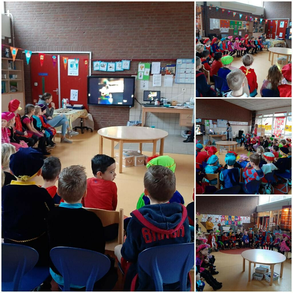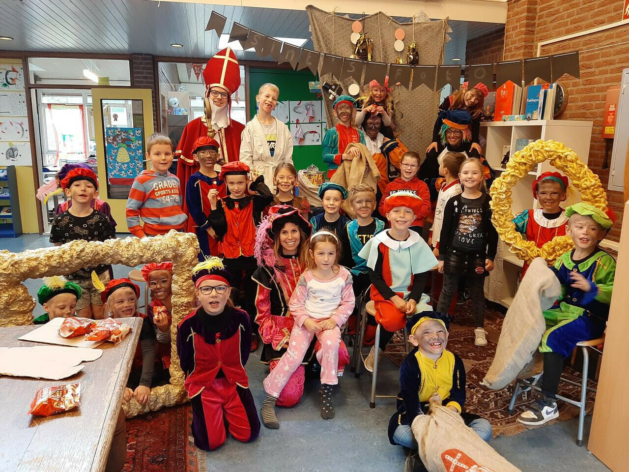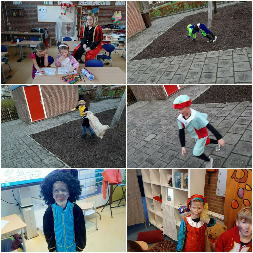 Eerst ging Sinterklaas Sjoerd met de juffen pieten naar groep 1/2 en konden groep 3/4 zich verder verkleden, schminken en nog even de kunsten oefenen voor de 'Sint'. Verder werd er nog wat moois gemaakt hier en daar.