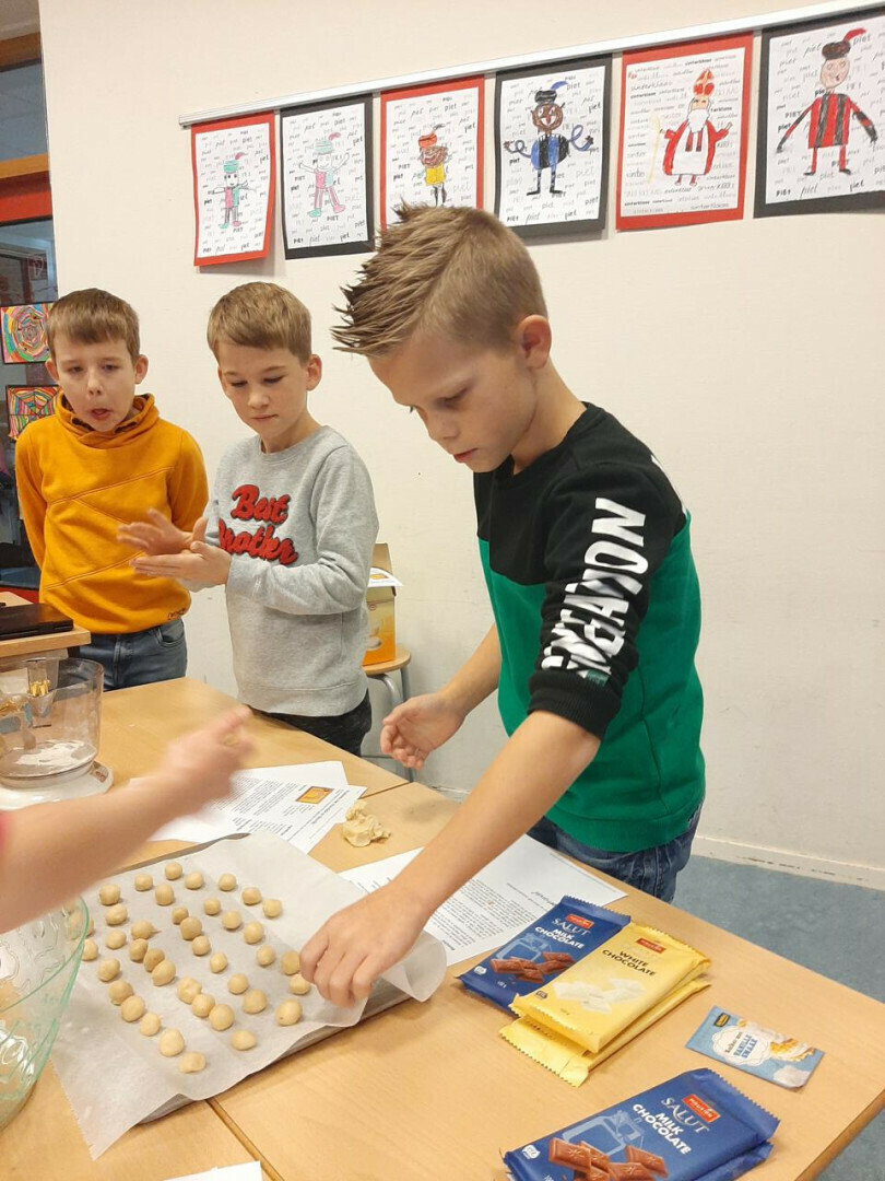*Bij juf Wietske hebben de 'kruidnoot-bakkers' de chocolade goed voorgeproefd, en een beetje mee lol gemaakt ;)
