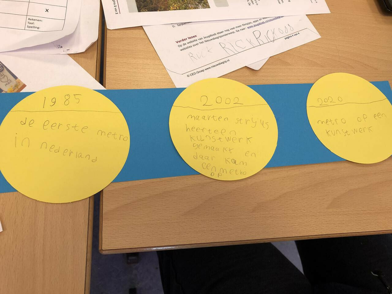 Begrijpend lezen Door Stephan Wesdijk Door juf Rian, groep 5/6 De kinderen maakten in groepjes een tijdbalk over de metro.De tekst van Nieuwsbegrip ging namelijk over de metro in Spijkenisse die op een kunstwerk bleef hangen. Terug naar het overzicht volgend artikel